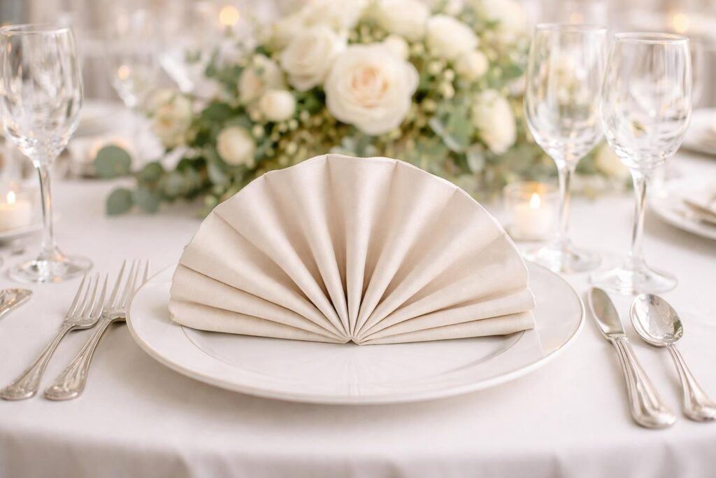 - Pliage en éventail : Idéal pour les mariages classiques et chic.