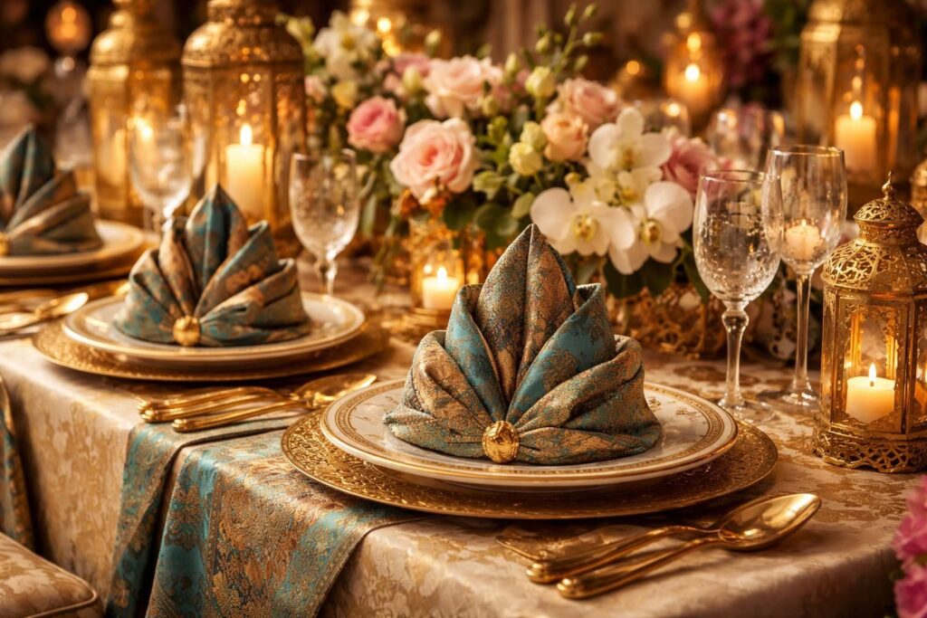 Au-delà des techniques, la façon dont le pliage de serviette est effectué peut faire toute la différence pour le mémorable du mariage. L’harmonisation entre le thème orientale choisi et les détails, y compris le pliage, a un pouvoir narratif indéniable.
