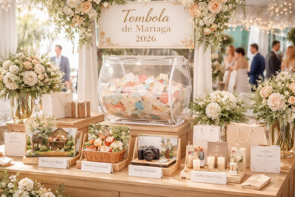 Le mariage est un événement unique qui célèbre l’amour, l’engagement et le partage. En 2026, les réceptions de mariage évoluent avec des tendances innovantes et émouvantes, et la tombola mariage s’impose comme une idée d’animation originale et interactive. En intégrant une idée tombola adaptée, vous aurez la possibilité d’engager vos invités, de créer des souvenirs inoubliables et d’ajouter une touche de personnalisation à votre grand jour. Qu’il s’agisse de lots amusants, de tirages surprises ou de moments de partage entre proches, la tombola peut transformer votre événement en une expérience mémorable. Dans cet article, nous explorerons les différents aspects d’une tombola de mariage réussie, les types de prix attractifs et comment cette animation peut renforcer les connexions entre vos invités. Découvrez comment la tombola peut séduire petits et grands, en alliant humour et convivialité dans le cadre d’un jeu mariage sans pareil.
